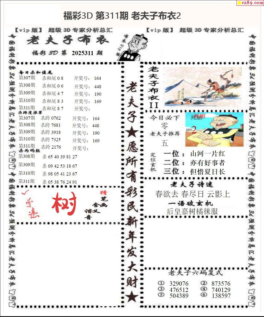 > 老夫子布衣2025311期3d图谜